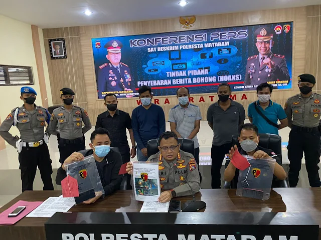 Untuk menjelaskan secara resmi hasil penyelidikan terkait foto-foto tersebut serta siapa pelaku awal yang menyebarkan melalui medsos tersebut, Polresta Mataram menggelar Komferensi pers yang dipimpin langsung Kapolresta Mataram Kombes Pol Heri Wahyudi SIK MM, Kamis (26/05) di Gedung Wira Graha Pratama Polresta Mataram.