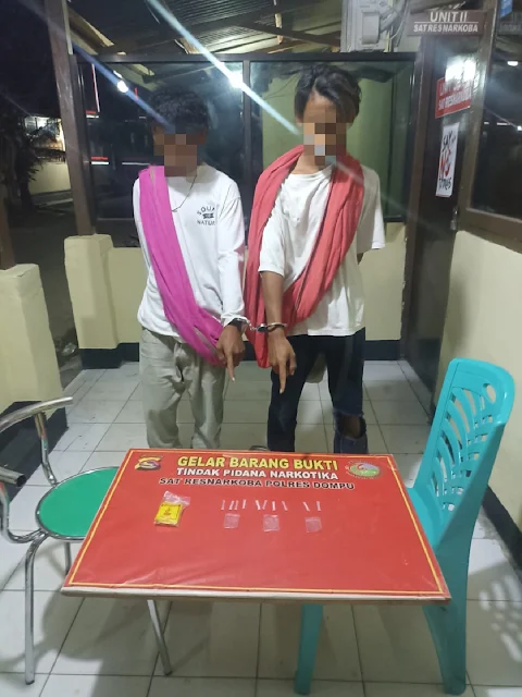 Dompu-NTB. Media Dinamika Global.Id.__ Berantas narkoba di wilayah hukum polres Dompu, Sat Reserse Narkoba Polres Dompu kembali mengamankan dua orang diduga menjual, membeli, memiliki, menyimpan dan menguasai Shabu-shabu di Jalan Lintas Kelurahan Bali, Kecamatan Dompu, Kabupaten Dompu. Sabtu, 12 Agustus 2023 sekitar pukul 01.15 Wita.