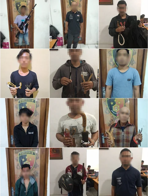 "Para terduga Kami amankan lengkap dengan barang bukti yang diduga digunakan untuk menyerang petugas pada peristiwa tersebut seperti senjata rakitan, panah dan anak Panah, Ketepel serta senta tajam lainnya yang diduga digunakan dalam penyerangan aparat kepolisian pada peristiwa tersebut,"tegas Yogi.